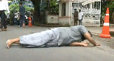 കേരളത്തിലെ തെരുവുനായ പ്രശ്നം : ഹൈക്കോടതിക്ക് മുന്നില് നഗരസഭ കൗണ്സിലറുടെ ശയനപ്രദക്ഷിണം