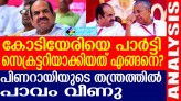കോടിയേരി ബാലകൃഷ്ണന് സി പി എം സംസ്ഥാന സെക്രട്ടറിയായത് മനസില്ലാ മനസ്സോടെ. പിണറായി വിജയന്റെ നിര്ബന്ധം ഒന്നുകൊണ്ടു മാത്രമാണ് അദ്ദേഹം സെക്രട്ടറി പദത്തിലെത്തിയത്. ആദ്യ പ്രതികരണം തന്നെ ബി ജെ പി ക്ക് എതിരെ ...