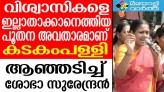 ഞെട്ടലോടെ വി മുരളീധരന്... കഴക്കൂട്ടത്ത് തെരഞ്ഞെടുപ്പ് പ്രചാരണം ചൂട് പിടിക്കവേ ശോഭ സുരേന്ദ്രന് ആഞ്ഞടിക്കുന്നു; കേന്ദ്രമന്ത്രി വി മുരളീധരന്റെ സാന്നിധ്യത്തില് കടകംപള്ളിയെ പൂതനയെന്ന് വിളിച്ച് ശോഭാ സുരേന്ദ്രന്; ശബരിമല വിഷയവും ദേവസ്വം മന്ത്രിയായ കടകംപള്ളി സുരേന്ദ്രന്റെ നിലപാടുമാണ് ശോഭ സുരേന്ദ്രന് ചര്ച്ചയാക്കിയത്