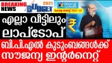 എല്ലാ വീട്ടിലും ലാപ്ടോപ് ഉറപ്പാക്കും. മെച്ചപ്പെട്ട ഇന്റർനെറ്റ് സേവനം കുറഞ്ഞനിരക്കിൽ. ബിപിഎൽ കുടുംബങ്ങൾക്ക് സൗജന്യ ഇന്റർനെറ്റ്.14 ജില്ലകളിൽ 600 ഓഫിസുകൾ ഉൾപ്പെടുന്ന കെ–ഫോൺ പദ്ധതിക്ക് ഫെബ്രുവരിയിൽ തുടക്ക...