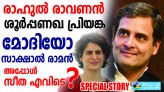 രാഹുല് രാവണന്, ശൂര്പ്പണഖ പ്രിയങ്ക, മോദിയോ സാക്ഷാല് രാമന്; ഇന്ത്യന് സംസ്കാരത്തിന്റെ ധന്യതയായ ഭക്തമനസ്സുകളിലെ മനോഭിരാമനായ രാമന് എന്ന സങ്കല്പം ഇന്ന് അപകടാവസ്ഥായിൽ; രാഹുലിനേയും പ്രിയങ്കയേയും രാമായണത്തിലെ കഥാപാത്രങ്ങളോട് ഉപമിച്ച് ബിജെപി നേതാവ്