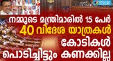 എൽ ഡി എഫ് സർക്കാർ അധികാരത്തിലേറിയ ശേഷം 15 മന്ത്രിമാർ നടത്തിയ 40 വിദേശയാത്രകളിൽ വിമാനടിക്കറ്റിന്റെ കണക്കുകൾ സമർപ്പിച്ചത് വെറും 5 മന്ത്രിമാർ. 11 ലക്ഷം രൂപയുടെ യാത്രാ ബില്ലുകളാണ് ഇവർ നൽകിയിരിക്കുന്നത് . ...