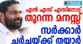 ശബരിമല വിഷയത്തില് എന്.എസ്.എസുമായി ചര്ച്ചയ്ക്ക് തയ്യാർ;വിഷയത്തില് സര്ക്കാര് ചര്ച്ചയ്ക്ക് എപ്പോഴും സന്നദ്ധമാണ്.;ചര്ച്ചകളോട് സര്ക്കാരിന് തുറന്ന മനസാണ്; ദേവസ്വം മന്ത്രി കടകം പള്ളി സുരേന്ദ്രൻ