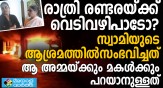 പുലര്ച്ചെ വലിയ സ്ഫോടനശബ്ദം കേട്ടാണ് സ്വാമി സന്ദീപാനന്ദഗിരിയുടെ ആശ്രമത്തിന് സമീപം വാടകവീട്ടില് കഴിയുന്ന രാജമ്മയും മകള് അനുഷയും ഉണര്ന്നത്. ആദ്യം വിചാരിച്ചത് സമീപത്തെ ദേവീ ക്ഷേത്രത്തില് വെടിവഴിപാട്...