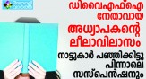 ഡിവൈഎഫ്ഐ നേതാവായ അധ്യാപകന്റെ നഗ്നതാ പ്രദർശനം വിദ്യാർത്ഥികൾക്ക് മുമ്പിൽ; അശ്ലീല സംസാരം കടുത്തതോടെ പരാതിയുമായി വിദ്യാർത്ഥികൾ മുന്നിട്ടിറങ്ങി: നാട്ടുകർ പഞ്ഞിക്കിട്ടതിന് പിന്നാലെ അധ്യാപകന് സസ്പെൻഷനും