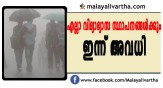 എല്ലാ വിദ്യാഭ്യാസ സ്ഥാപനങ്ങള്ക്കും ഇന്ന്അവധി; തിരുവനന്തപുരം, കൊല്ലം, ആലപ്പുഴ, ഇടുക്കി, പത്തനംതിട്ട, കോട്ടയം, എറണാകുളം, തൃശ്ശൂര് ജില്ലകളിലെ എല്ലാ വിദ്യാഭ്യാസ സ്ഥാപനങ്ങള്ക്കുമാണ് അവധി പ്രഖ്യാപിച്ചത്