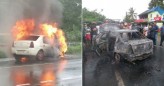 റോഡിലൂടെ ഓടിക്കൊണ്ടിരുന്ന കാര് കത്തി നശിച്ചു; പുക കണ്ടതോടെ യാത്രക്കാര് പുറത്തിറങ്ങിയതിനാല് വന് ദുരന്തം ഒഴിവായ