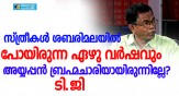 ഹനുമാനേക്കാള് വലിയ നൈഷ്ഠിക ബ്രഹ്മചാരി ഉണ്ടോ? നൈഷ്ഠിക ബ്രഹ്മചാരികള്ക്ക് സ്ത്രീകള് അടുത്തു വന്നാലോ ഒന്നും ഒരു കുലുക്കവും ഉണ്ടാകില്ല. അത് അയ്യപ്പനല്ല, ആരാണെങ്കിലും. അതുപോലെ അയ്യപ്പന്റെ തൊട്ടടുത്തല്ലേ മാളികപ്പുറത്തമ്മ. അതൊരു സ്ത്രീസാന്നിധ്യമല്ലേ? നിത്യമായ സ്ത്രീ സാന്നിധ്യം; യുവതിപ്രവേശനത്തെ തടയുന്നവരെ പരിഹസിച്ച് ടി.ജി മോഹന് ദാസ്