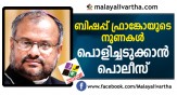 യുവതിയായ കന്യാസ്ത്രീയെ പതിമൂന്ന് തവണ ബലാല്സംഗം ചെയ്ത ബിഷപ്പ് ഫ്രാങ്കോ മുളയ്ക്കലിനെ നുണപരിശോധനയ്ക്ക് വിധേയമാക്കാനുള്ള നടപടികള് പൊലീസ് തുടങ്ങി, ബിഷപ്പിന്റെ സഹായി വലയില്, പൊതുസമൂഹം സഭയ്ക്കും സര്ക്കാരിനും എതിരായ പ്രതിഷേധം ശക്തമാക്കുന്നു