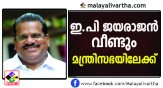 ഇപി ജയരാജന് വീണ്ടും മന്ത്രിസഭയിലേക്ക് ; നേതാക്കള്ക്കിടയില് ധാരണയായതായി റിപ്പോര്ട്ട് ; മുഖ്യമന്ത്രി ചികിത്സയ്ക്കായി അമേരിക്കയ്ക്ക് പോകുമ്പോൾ ചുമതല ജയരാജന് നൽകിയേക്കും