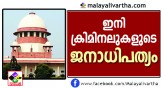 ക്രിമിനല് കേസിലെ പ്രതികള്ക്ക് തെരഞ്ഞെടുപ്പില് മല്സരിക്കാമെന്ന് ചീഫ് ജസ്റ്റിസ് ദീപക് മിശ്ര അധ്യക്ഷനായ ബെഞ്ച്, സ്ഥാനാര്ത്ഥികളുടെ കേസുകളുടെ വിവരങ്ങളും ക്രിമിനല് പശ്ചാത്തലവും രാഷ്ട്രീയ പാര്ട്ടികള് പൊതുജനങ്ങളെ അറിയിക്കണമെന്നും കോടതി, എം.പിമാരും എം.എല്.എമാരും ഉള്പ്പെടെ 1,765 പേര് 3,0896 കേസുകളില് പ്രതികളാണെന്ന് കേന്ദ്രസര്ക്കാര് കഴിഞ്ഞ മാര്ച്ചില് സുപ്രീംകോടതിയെ അറിയിച്ചിരുന്നു