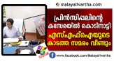 മഹാരാജാസ് കോളജ് പ്രിന്സിപ്പലിന്റെ കസേര കത്തിച്ചവര് കാടത്ത സമരം ഉപേക്ഷിച്ചിട്ടില്ല ; പ്രിൻസിപ്പലിന്റെ കസേരയിൽ കൊടിനാട്ടി എസ്എഫ്ഐയുടെ കാടത്ത സമരം വീണ്ടും