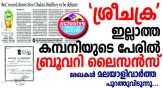 ഇല്ലാത്ത കമ്പനിയുടെ പേരിൽ ബ്രൂവറി ലൈസൻസ് ; ശ്രീചക്ര ഡിസ്റ്റിലറിക്ക് അംഗീകാരം നല്കുന്നതിന് മുന്പ് എക്സൈസ് ഡിപ്പാര്ട്ട്മെന്റ് അവര് സമര്പ്പിച്ച അടിസ്ഥാന രേഖകള് ശരിയായി പരിശോധിച്ചിരുന്നില്ല എന്ന് വ്യക്തന്മാക്കുന്ന രേഖകൾ മലയാളിവാർത്തക്ക്