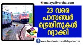 തിരുവനന്തപുരം ഡിവിഷനില് അറ്റകുറ്റപ്പണിയുടെ ഭാഗമായി ഈ മാസം 23 വരെ എട്ട് പാസഞ്ചര് ട്രെയിനുകള് റദ്ദാക്കി. ഗുരുവായൂര് തൃശൂര് പാസഞ്ചര്, 56044 തൃശൂര് ഗുരുവായൂര് പാസഞ്ചര്, 56333 പുനലൂര് കൊല്ലം പാസഞ...