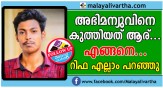 കുടുംബ പ്രശ്നത്തെത്തുടര്ന്ന് സഹോദരന് മണ്ണെണ്ണ ഒഴിച്ച് തീകൊളുത്തി ആശുപത്രിയിലായിരുന്ന വക്കീല് ഗുമസ്ത കമ്മിള് കണ്ണംകോട് വി കെ പച്ച ശ്യാമള സദനത്തില് അച്ചു എ നായര് (26) മരിച്ചു. തിരുവനന്തപുരം മെഡിക...