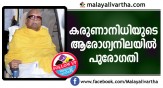ഗുരുതരാവസ്ഥയില് ആശുപത്രിയില് പ്രവേശിപ്പിച്ച ഡിഎംകെ അധ്യക്ഷനും തമിഴ്നാട് മുന് മുഖ്യമന്ത്രിയുമായ എം. കരുണാനിധിയുടെ ആരോഗ്യത്തിൽ പുരോഗതി. രക്തസമ്മദര്ദം കുറഞ്ഞതിനെ തുടര്ന്നാണ് കരുണാനിധിയെ ആശുപത്രിയില...