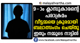 നമ്മുടെ നാട്ടില് കുട്ടിക്കുറ്റവാളികള് വര്ധിക്കുകയാണ്. പതിനഞ്ചുകാരന് 42 കാരിയെ ബലാല്സംഗം ചെയ്തു. കോതമംഗലം ഊന്നുകല് സ്വദേശിയാണ് വീട്ടമ്മയെ പീഡിപ്പിച്ചത്. പ്രതിയെ പൊലീസ് കസ്റ്റഡിയിലെടുത്തു.ഒന്നരമാസ...