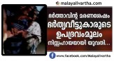 ഭർത്താവിന്റ മരണശേഷം വീട്ടിൽനിന്നും ഇറങ്ങിപോകണമെന്ന ആവശ്യവുമായി ഭർതൃവീട്ടുകാരുടെ ഉപദ്രവം