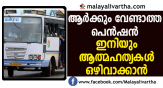 അഞ്ച് മാസമായി കെ.എസ്.ആര്.ടി.സി പെന്ഷന് കിട്ടിയിട്ട് മരുന്നു വാങ്ങാനും സാധനങ്ങള് വാങ്ങാനും മറ്റുള്ളവരുടെ മുമ്പില് കൈ നീട്ടണം. അവസാനം സഹികെട്ട് കുടുംബ പെന്ഷന് വാങ്ങുന്ന വീട്ടമ്മ ആത്മഹത്യ ചെയ്തു. ...