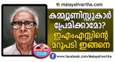 സി.പി.എമ്മിന്റെ താത്വിക ആചാര്യനായ ഇ.എം.എസിനോട് ഒരിക്കല് ഒരു സഖാവ് ചോദിച്ചു, കമ്മ്യൂണിസ്റ്റുകാര്ക്ക് പ്രേമിക്കാമോ? കമ്മ്യൂണിസത്തിനു വേണ്ടിയാണെങ്കില് പ്രേമിക്കാം: സംശയലേശമന്യേ, ഇതായിരുന്നു മറുപടി. ഇത...