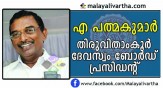 സഹകരണ ഗ്യാരണ്ടി ബോര്ഡ് വൈസ് ചെയര്മാനുമാനായ എ പത്മകുമാറിനെ തിരുവിതാംകൂര് ദേവസ്വം ബോര്ഡ് പ്രസിഡന്റായി നിയമിക്കാൻ തീരുമാനം