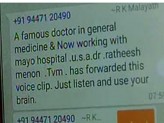 വ്യാജ സന്ദേശത്തില് വഞ്ചിതരാകരുതേ.രക്തസമ്മര്ദ്ദത്തിനും പ്രമേഹത്തിനും മരുന്നു കഴിക്കേണ്ടെന്നും ഹൃദയസ്തംഭനത്തിന് വെള്ളം കുടിച്ചാല് മതിയെന്നും സമൂഹ മാധ്യമങ്ങളിലൂടെ വ്യാജ ശബ്ദരേഖ പ്രചരിക്കുന്നു. അമേരിക്...