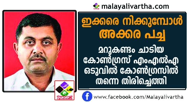 രാജ്യസഭാ തെരഞ്ഞെടുപ്പിന് ശേഷം ബിജെപിയിൽ നിന്ന് മറുകണ്ടം ചാടിയ കോണ്ഗ്രസ് എംഎൽഎ ഒടുവിൽ കോണ്ഗ്രസില് തന്നെ തിരിച്ചെത്തി ; കാരണം ഇതാണ് ...