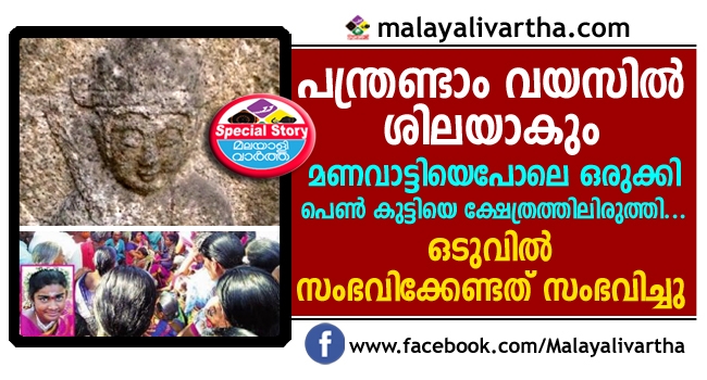 12 വയസുകാരി ശിലയാകുമെന്ന് പ്രവചനം; മണവാട്ടിയെപോലെ അണിയിച്ചൊരുക്കി അച്ഛനും അമ്മയും ക്ഷേത്രനടയിൽ ഇരുത്തി: വാർത്ത കേട്ട് ക്ഷേത്രത്തിൽ ഭക്തരുടെ വൻ തിരക്ക്!! ഇപ്പോൾ ശിലയായി മാറുമെന്നുള്ള വിശ്വാസം തലയ്ക്ക് പിടിച്ച് പെണ്ണുങ്ങളുടെ കൂട്ട നൃത്തം, ഒടുവിൽ അത് സംഭവിച്ചു... എല്ലാം കൈവിട്ടുപോയതോടെ ജോത്സ്യൻ ഉയിരും കൊണ്ട് ഓടി....