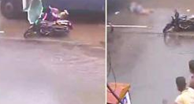 കനത്ത മഴയില് റോഡിലെ വെള്ളം നിറഞ്ഞ ഗട്ടറില് ബൈക്ക് മറിഞ്ഞ് വീണ് യാത്രക്കാരി ബസ് കയറി മരിച്ചു. കല്യാണിലെ സ്വകാര്യ സ്കൂള് ജീവനക്കാരി മനീഷ ഭോയിറാണ് മരിച്ചത്. റോഡിലെ ഗട്ടറില് വീണ് ബൈക്ക് ചരിഞ്ഞതോടെ പിന്നിലിരുന്ന മനീഷ അടുത്തു കൂടി കടന്നുപോയ ബസിനടിയിലേക്ക് വീഴുകയായിരുന്നു. സംഭവത്തിന്റെ സി.സി.ടി.വി ദൃശ്യങ്ങള് പുറത്തുവന്നിട്ടുണ്ട്.