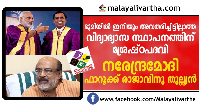 ലോകത്ത് ഇന്നുവരെ ഒരു ഭരണാധികാരിയും സഞ്ചരിച്ചിട്ടില്ലാത്ത ഭ്രമണപഥത്തിലൂടെയാണ് നരേന്ദ്രമോദിയുടെ പ്രയാണം ; റിലയന്സ് ഇന്സ്റ്റിറ്റ്യൂട്ടിന് ശ്രേഷ്ഠപദവി നല്കിയതിനെരെ മന്ത്രി തോമസ് ഐസക്