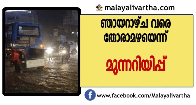 സംസ്ഥാനത്ത് കനത്ത മഴ പെയ്യുമെന്ന് കാലാവസ്ഥാ നിരീക്ഷണ കേന്ദ്രം; ഞായറാഴ്ച വരെ തോരാമഴയെന്നും മുന്നറിയിപ്പ്