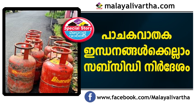 പ്രകൃതി വാതകം, ജൈവവാതകം പ്രോല്സാഹിപ്പിക്കുക ലക്ഷ്യം വെച്ച് പാചകവാതക ഇന്ധനങ്ങള്ക്കെല്ലാം സബ്സിഡി നിര്ദേശം