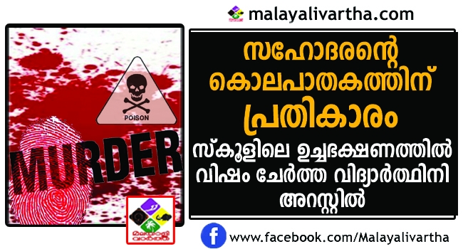 സഹോദരന്റെ കൊലപാതകത്തിന് പ്രതികാരം ചെയ്യാൻ പെൺകുട്ടി കണ്ടെത്തിയ വഴി സ്കൂളിലെ വിദ്യാര്ത്ഥികളെ എല്ലാം കൊല്ലുക ; ഉച്ചഭക്ഷണത്തില് വിഷം കലര്ത്തിയ ഏഴാം ക്ലാസുകാരി അറസ്റ്റിൽ