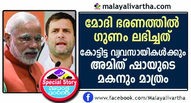റാഫേല് അഴിമതി 45,000 കോടി രൂപയുടേതാണ്. മോദിയുടെ സഹായത്താല് ഒരു വ്യവസായി 45,000 കോടി രൂപ ലാഭമുണ്ടാക്കി. നോട്ട് നിരോധനം ബാധിച്ചത് കര്ഷകരെയും ചെറുകിട കച്ചവടക്കാരെയുമാണ്. എന്നാല് ഗുണം ലഭിച്ചത് കോട്ടിട്ട വ്യവസായികള്ക്കും അമിത് ഷായുടെ മകനുമാണെന്ന് രാഹുല് വിമര്ശിച്ചു.