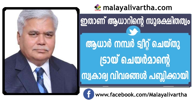 ആധാറിന്റെ സുരക്ഷിതത്വം തെളിയിക്കാന് ആധാര് നമ്പര് ട്വീറ്റ് ചെയ്ത ട്രായ് ചെയര്മാന് ആര്.എസ് ശര്മ്മയ്ക്ക് എട്ടിന്റെ പണി; ശര്മ്മയുടെ വ്യക്തിവിവരങ്ങള് എല്ലാം പുറത്തുവിട്ട് ഹാക്കര്മാര്; ആധാര് വിവരങ്ങള്കൊണ്ട് ആരെയും ഉപദ്രവിക്കാന് കഴിയില്ലെന്ന പ്രസ്ഥാനയ്ക്ക് പിന്നാലെയായിരുന്നു ഹാക്കര്മാരുടെ പണി