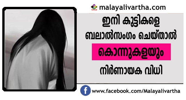 പന്ത്രണ്ടു വയസ്സിനു താഴെയുള്ള പെണ്കുട്ടികളെ മാനഭംഗപ്പെടുത്തിയാല് വധശിക്ഷ വിധിക്കാന് വ്യവസ്ഥ ചെയ്യുന്ന ബില് ലോക്സഭ പാസാക്കി. ലൈംഗിക കുറ്റകൃത്യങ്ങള്ക്കുള്ള കുറഞ്ഞ ശിക്ഷ 10 വര്ഷം തടവാക്കി. വധശിക്ഷ വ്യവസ്ഥ ചെയ്യുന്ന ക്രിമിനല് നിയമത്തില് നിയഭേദഗതി വരുത്തിക്കൊണ്ടുള്ള ഓര്ഡിനന്സിന് ഏപ്രില് 21 ന് കേന്ദ്ര മന്ത്രിസഭ അംഗീകാരം നല്കിയിരുന്നു. കഠുവ, ഉന്നാവ് ബലാല്സംഗ കേസുകളുടെ ചുവടുപിടിച്ചായിരുന്നു കേന്ദ്ര സര്ക്കാരിന്റെ നടപടി.