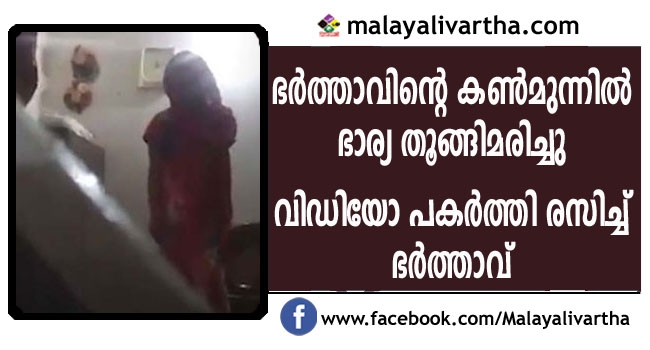 ഭര്താവിന്റെവീട്ടുകാര് നോക്കിനില്ക്കുമ്പോള് യുവതി തൂങ്ങിമരിച്ചു; ഭാര്യയുടെ മരണ വിഡിയോ പകര്ത്തി രസിച്ച് ഭര്ത്താവും കുടുംബവും