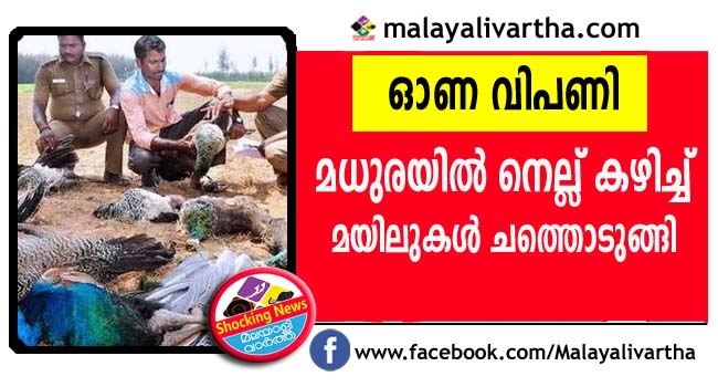 ഓണ വിപണി മുന്നില് തമിഴ്നാട്ടില് വിഷം തളിച്ചുള്ള നെല്കൃഷി തകൃതിയില്; വിഷം കലര്ന്ന നെല്ല് കഴിച്ച് മയിലുകള് കൂട്ടത്തോടെ ചത്തൊടുങ്ങുന്നു
