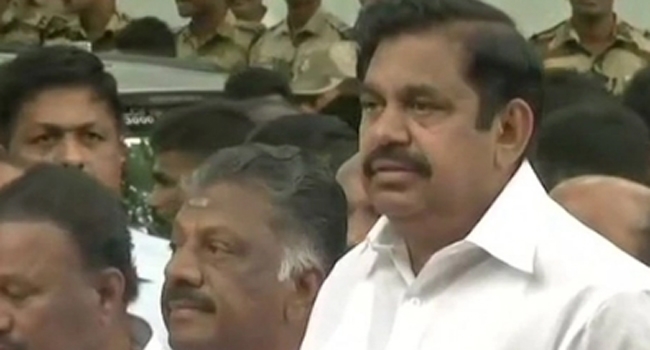 അന്തരിച്ച തമിഴ്നാട് മുന് മുഖ്യമന്ത്രി എം.കരുണാനിധിക്ക് അന്തിമോപചാരമര്പ്പിക്കാനെത്തിയ മുഖ്യമന്ത്രി എടപ്പാടി പളനിസ്വാമിക്കെതിരെ ഡിഎംകെ പ്രവര്ത്തരുടെ പ്രതിഷേധം. രാജാജി ഹാളില് എത്തിയ മുഖ്യമന്ത്രിക്കു നേര്ക്ക് ഡിഎംകെ അണികള് മുദ്രാവാക്യം മുഴക്കി. കരുണാനിധിയുടെ സംസ്കാരം മെറീന ബീച്ചില് നടത്താനാവില്ലെന്ന സര്ക്കാര് നിലപാടാണ് പ്രവര്ത്തകരെ ചൊടിപ്പിച്ചത്. ചൊവ്വാഴ്ച രാത്രിയില് തന്നെ സര്ക്കാര് തീരുമാനത്തിനെതിരെ സംസ്ഥാനത്തിന്റെ വിവിധ ഭാഗങ്ങളില് പ്രതിഷേധം ഉയര്ന്നിരുന്നു. കാവേരി ആശുപത്രിക്കു മുന്പില് പാര്ട്ടി പ്രവര്ത്തകരും പോലീസും തമ്മില് ഉന്തുംതള്ളുമുണ്ടായിരുന്നു.