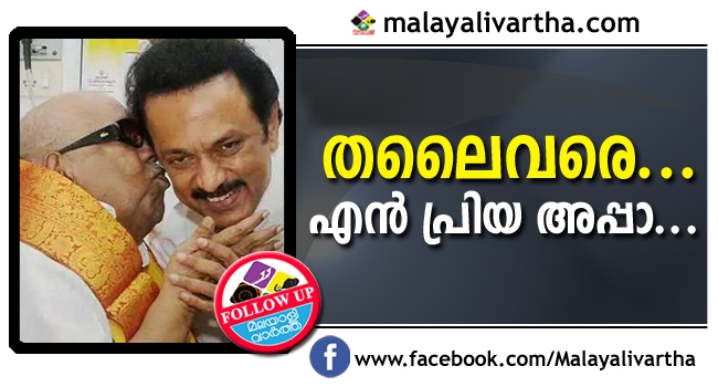 തലൈവരെ, ഈ ഒരു തവണയെങ്കിലും ഞാന് അപ്പാ എന്ന് വിളിച്ചോട്ടെ; കരളുരുകി കരുണാനിധിക്ക് സ്റ്റാലിന്റെ കത്ത്...സ്റ്റാലിനെ പിന്ഗാമിയാക്കാന് കാരണമെന്ത്