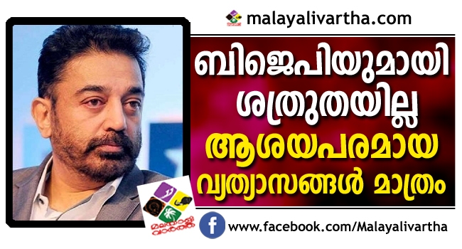 ബിജെപിയുമായി ശത്രുതയില്ലെന്നും ആശയപരമായ വ്യത്യാസങ്ങള് മാത്രമാണുള്ളതെന്നും നടനും മക്കള് നീതി മയ്യം സ്ഥാപകനുമായ കമല്ഹാസന്. അതേസമയം ഇതുവരെ ഏതെങ്കിലും പാര്ട്ടിയുമായി ഒന്നിക്കണമോയെന്ന കാര്യത്തെക്കുറിച്ച് ചിന്തിച്ചിട്ടില്ലെന്നും കമല്ഹാസന് വ്യക്തമാക്കി.