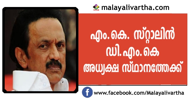 കരുണാനിധി അന്തരിച്ച സാഹചര്യത്തില് ഡി.എം.കെ അധ്യക്ഷ സ്ഥാനത്തേക്ക് എം.കെ. സ്റ്റാലിന്