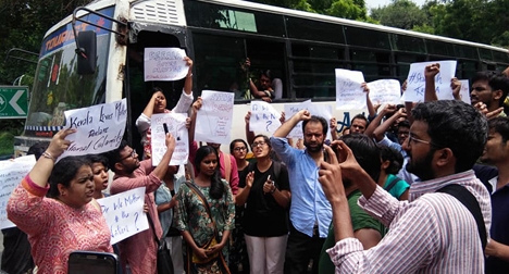 കേരളത്തിലെ പ്രളയം ദേശീയ ദുരന്തമായി പ്രഖ്യാപിക്കണമെന്നും സംസ്ഥാനത്തിന് എല്ലാ സഹായവും ഉറപ്പാക്കണമെന്നും ആവശ്യപ്പെട്ട് ഡല്ഹിയില് ജെഎന്യു വിദ്യാര്ത്ഥികളുടെ സമരം.