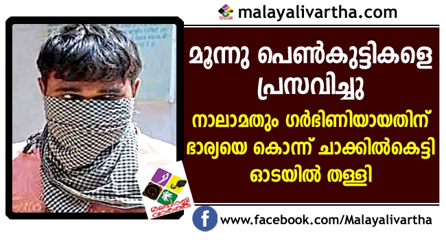 മൂന്നു പെണ്മക്കളെ പ്രസവിച്ച ശേഷം നാലാമതും ഗര്ഭിണിയായ ഭാര്യയെ യുവാവ് കൊലപ്പെടുത്തി ചാക്കില്കെട്ടി ഓടയില് തള്ളി. ഇതിനകം മൂന്ന് കുഞ്ഞുപെണ്മക്കള് ഉള്ള കുടുംബത്തിലേക്ക് നാലാമത് ഒരു കുട്ടിയെ ഭര്ത്താവ് ആഗ്രഹിച്ചിരുന്നില്ല.
