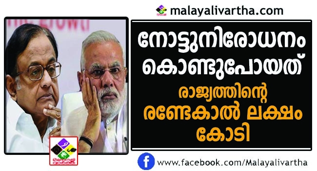 മോദിയെ രൂക്ഷമായി വിമര്ശിച്ച് ചിദംബരം...മിസ്റ്റര് മോദി, രാജ്യത്തിന് രണ്ടേകാല് ലക്ഷം കോടി രൂപ നഷ്ടപ്പെടുത്തി നിങ്ങള് എന്തു നേടി