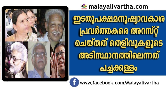 ഇടതുപക്ഷമനുഷ്യാവകാശ പ്രവര്ത്തകരെ അറസ്റ്റ് ചെയ്തത് വ്യക്തമായ തെളിവുകളുടെ അടിസ്ഥാനത്തിലെന്ന മഹാരാഷ്ട്ര പൊലീസിന്റെ അവകാശവാദം കള്ളം; കവി വരവര റാവുവിന്റെ അനന്തരവന്