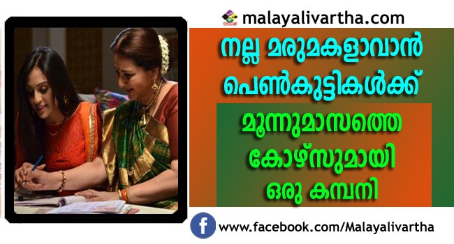വിവാഹത്തിന് തയ്യാറെടുക്കുന്ന പെണ്കുട്ടികളെ മൂന്നുമാസത്തെ പരിശീലനപരിപാടിയിലൂടെ 'മികച്ച മരുമകളായി' വാര്ത്തെടുക്കുമെന്നാണ് കമ്പനിയുടെ അവകാശവാദം. 'എന്റെ മകള്, എന്റെ അഭിമാനം' എന്ന് പേരിട്ടിരിക്കുന്ന ഈ ക്രാഷ് കോഴ്സിന് ഇപ്പോള് മികച്ച പ്രതികരണമാണ് ലഭിക്കുന്നതുെന്നും കമ്പനി അധികൃതര് പറയുന്നു.