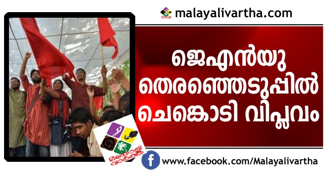 ഡല്ഹിയില് ചെങ്കൊടി പാറിപ്പറക്കുന്നു. എബിവിപി പ്രവര്ത്തകര് ബാലറ്റ് പെട്ടി പിടിച്ചെടുക്കാന് ശ്രമിച്ചതിനെ തുടര്ന്ന് കഴിഞ്ഞ ദിവസം 14 മണിക്കൂറോളം വോട്ടെണ്ണല് നിര്ത്തിവെച്ചിരുന്നു.ജവഹര്ലാല് നെഹ്റു സര്വകലാശാല യൂണിയന് തിരഞ്ഞെടുപ്പില് മുഴുവന് ജനറല് സീറ്റുകളിലും ഇടതുസഖ്യം ഉജ്വല വിജയത്തിലേക്ക്. ആകെ പോള് ചെയ്ത 5185ല് 4709 വോട്ടുകള് എണ്ണിയപ്പോള് എല്ലാ ജനറല് സീറ്റുകളിലും ഇടത് സഖ്യത്തിലെ സ്ഥാനാര്ത്ഥികള് ബഹുദൂരം മുന്നിലാണ്.