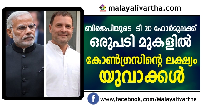 2019 ലെ ലോക്സഭാ തെരഞ്ഞെടുപ്പിൽ വീണ്ടും അധികാരം പിടിക്കാനുറച്ച് ടി20 തന്ത്രവുമായി ബിജെപി മുന്നോട്ട് വന്നപ്പോൾ രാജ്യത്തുടനീളം ശക്തമായ പ്രചാരണം നടത്താനാണ് കോണ്ഗ്രസ് തീരുമാനം. ഒരുകോടി യുവാക്കളെയാണ് കോണ്ഗ്രസ് ലക്ഷ്യമിടുന്നത്. സപ്തംബര് 13ന് ഇതുസംബന്ധിച്ച നിര്ദേശം സംസ്ഥാനങ്ങള്ക്ക് നല്കിക്കഴിഞ്ഞു.