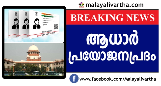 ഒറ്റത്തിരിച്ചറിയില് കാര്ഡ് പൗരന്മാര്ക്ക് നല്ലതാണെന്ന് സുപ്രീംകോടതി, ആധാര് പ്രയോജനപ്രദം, കൃത്രിമം അസാധ്യം, വിവരശേഖരണത്തില് പിഴവില്ല, ദേശീയസുരക്ഷയുമായി ബന്ധപ്പെട്ട കാര്യങ്ങളില് പോലും വ്യക്തികളുടെ അനുമതിയില്ലാതെ ബയോമെട്രിക് വിവരങ്ങള് കൈമാറാനാകില്ല - ചീഫ് ജസ്റ്റിസ് അധ്യക്ഷനായ ഭരണഘടനാ ബെഞ്ച് വിധി പ്രസ്താവിച്ചു